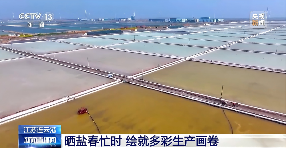 日曬制鹽公司春季扒鹽高峰期,陽光灑落,潔白如雪的鹽粒鋪滿鹽田,泛著晶瑩的光澤,鹽工們忙碌的身影不斷穿梭其間,空中俯瞰,鹽池仿佛是大自然的調(diào)色盤。