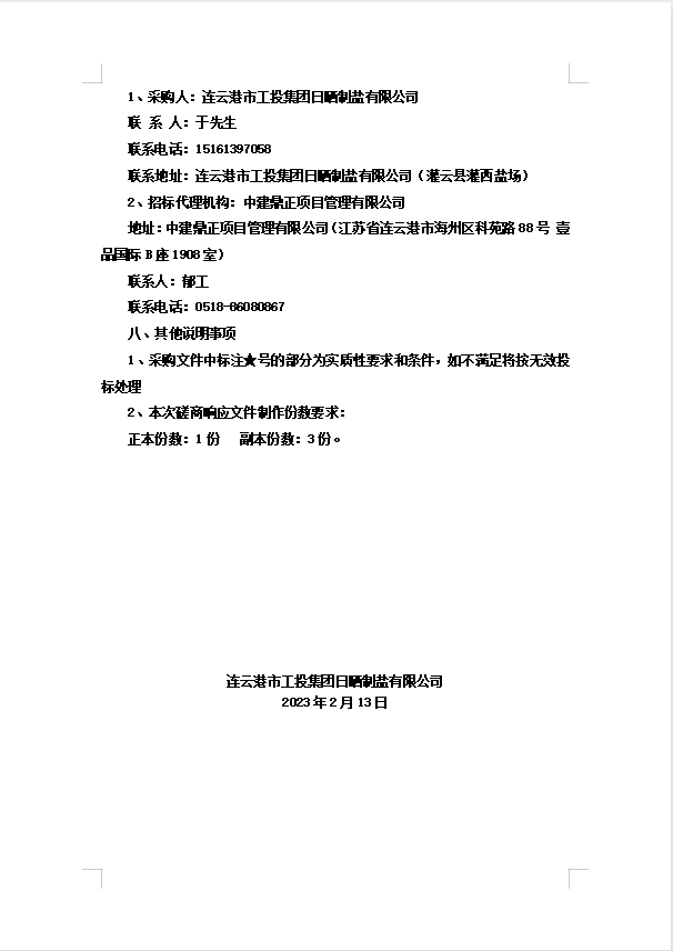 連云港市工投集團日曬制鹽有限公司浮木、壓條招標(biāo)公告