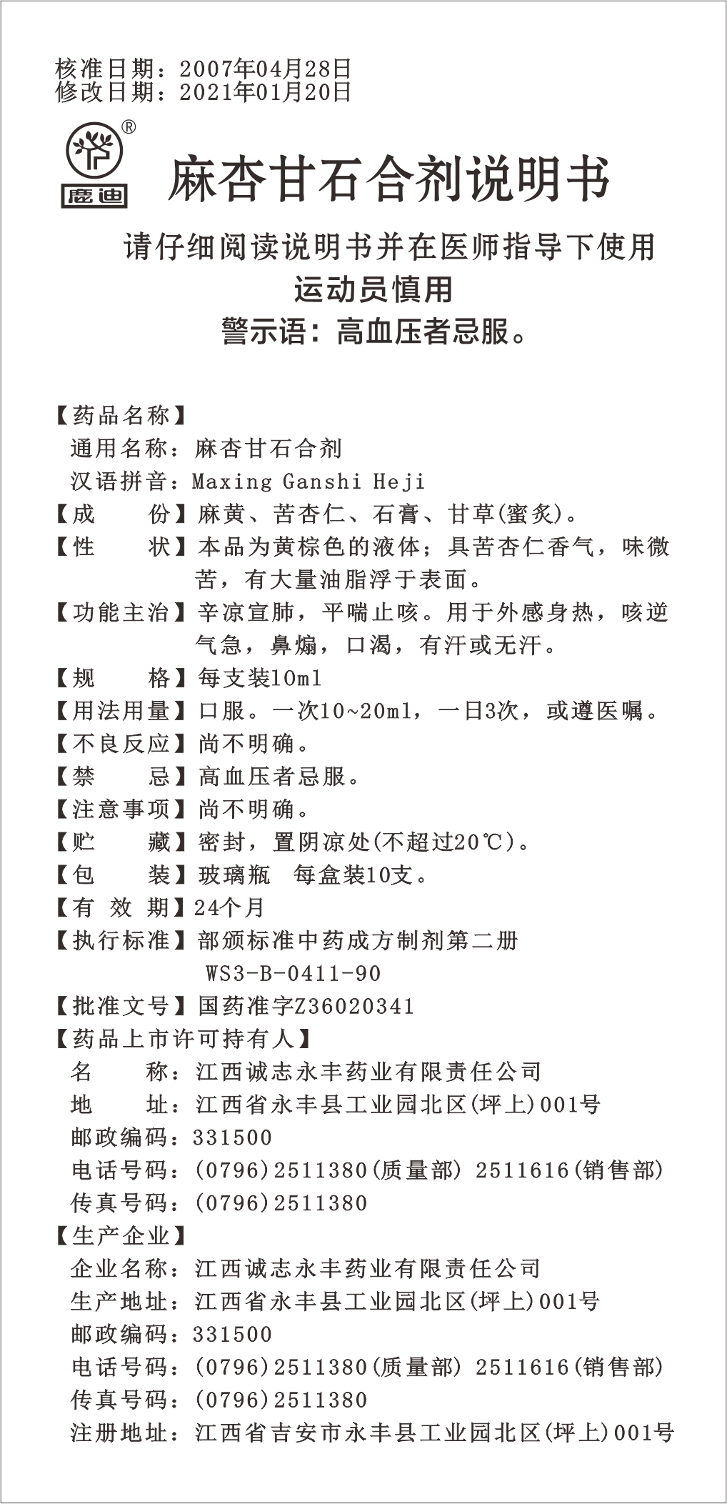 麻杏甘石合劑