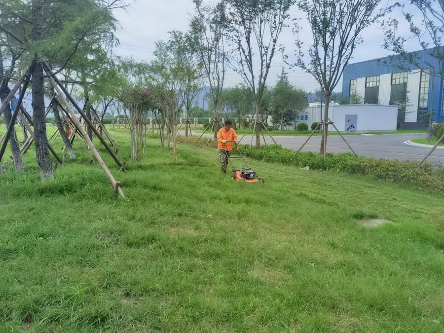 由于前期雨水較多,產(chǎn)業(yè)園草坪“瘋”長,公司迅速帶領(lǐng)苗圃養(yǎng)護(hù)人員,打藥殺菌,修剪草坪。7月25日下午3時(shí),外界氣溫高達(dá)36攝氏度,仿佛一個(gè)巨大的蒸籠籠罩著整個(gè)產(chǎn)業(yè)園。他們頂著烈日用高效的草坪專用藥物進(jìn)行殺菌消毒,隨后又手持草坪機(jī)、割草機(jī)等工具,對(duì)草坪進(jìn)行了精細(xì)修剪,經(jīng)過幾個(gè)小時(shí)的修剪,草坪終于恢復(fù)了應(yīng)有的美觀和平整度。盡管汗水浸濕了他們的工作服,但他們毫無怨言,用實(shí)際行動(dòng)詮釋著敬業(yè)精神。